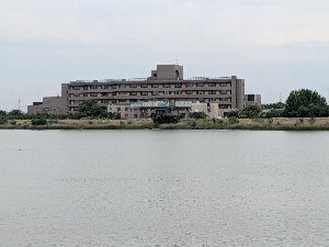 母の入院している碧南市民病院が油が淵越しに見える。