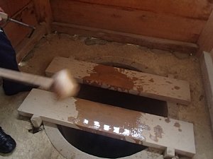 柄杓で水を流す。 |