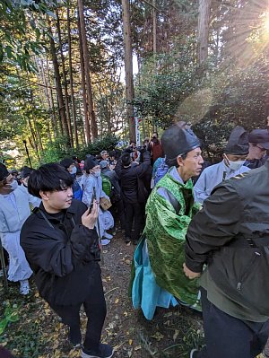 | お供え物を見守る人たち | 奪い合いが終了後移動 |