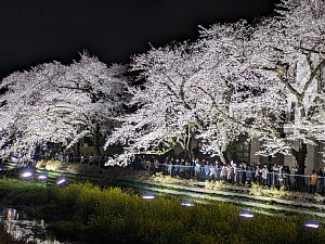 野川の両岸に咲く桜並木の約630メートル区間の桜を一夜限り3時間のみライトアップする人気のイベント。