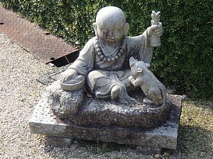 境内に十二支の動物と小僧の石像があった。