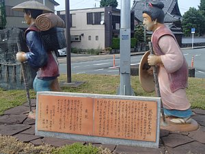 モニュメントは、熊野街道ををたどる旅人の姿を再現したといわれる。