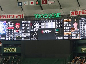 野球は、巨人対広島である。