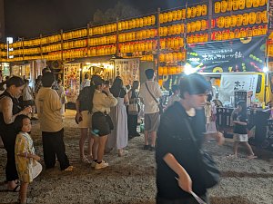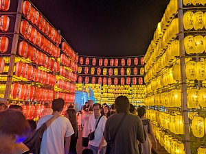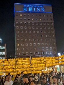 宿泊するホテルの前で、灯篭祭りが行われていた。